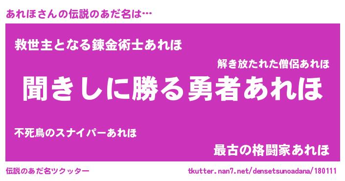 | 胡散臭い通販商品みたいなあだ名 | 『絶対に幸福をもたらす水素水…その名も「あれほ」』 |