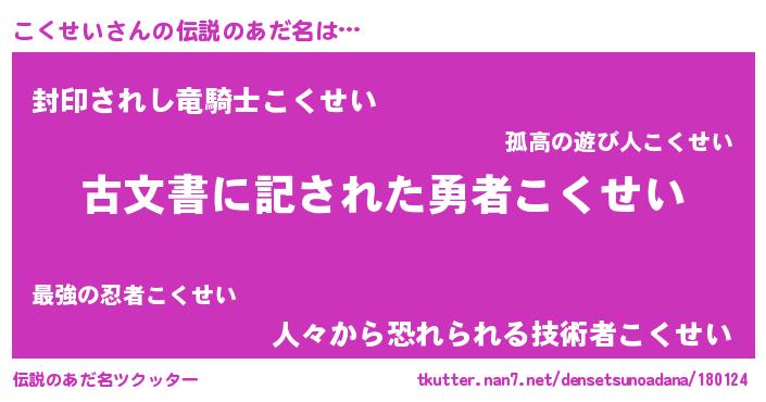 | ヒーロー風カッコイイあだ名 | 『ネオコクセイ』『仮面コクダー』 |