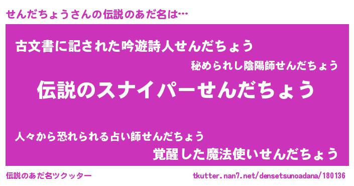 | 胡散臭い通販商品みたいなあだ名 | 『必ず成功する霊験あらたかなお札…その名も「せんだちょう」』 |