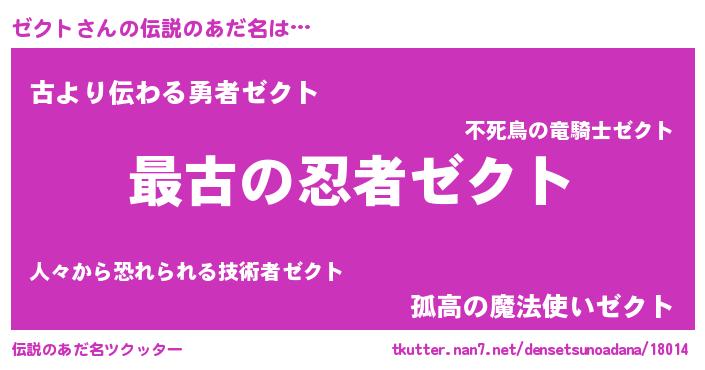 | ヒーロー風カッコイイあだ名 | 『ウルトラ戦士ゼクト』『仮面ゼクダー』 |