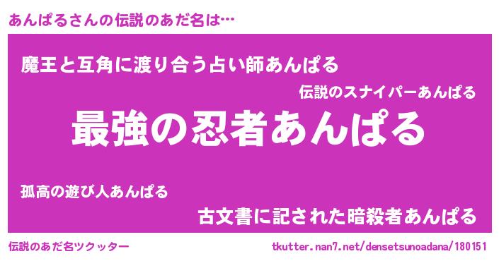 | 女子向けラノベタイトル風あだ名 | 『あんぱるの婚約者』『闇のあんぱる』 |