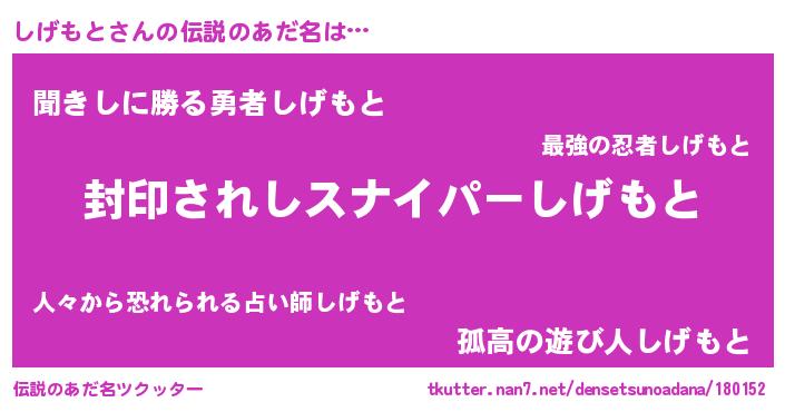 | 男性向けラノベタイトル風あだ名 | 『シゲモトアートオンライン』 |