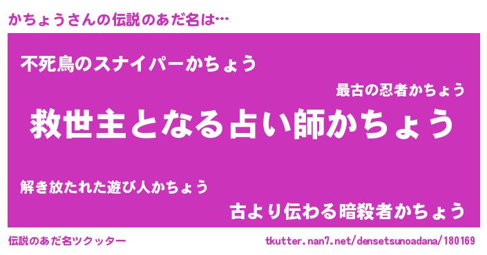 | ヒーロー風カッコイイあだ名 | 『天空の使者かちょう』『仮面カチダー』 |