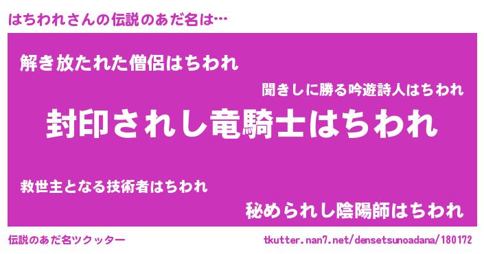 | 意味不明あだ名 | 『住所不定無職はちわれ(7歳)』 |