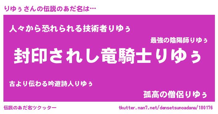 | ヒーロー風カッコイイあだ名 | 『スーパーリユゥ』『友情の使者りゆぅ』 |