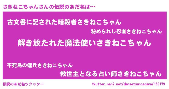 | ヒーロー風カッコイイあだ名 | 『銀牙騎士サキ』『ネオサキネコチャン』 |