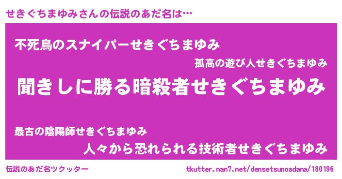 | 意味不明あだ名 | 『永久保存せきぐちまゆみ』 |