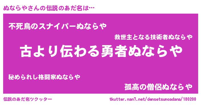 | ヒーロー風カッコイイあだ名 | 『ネオヌナラヤ』『スーパーヌナラヤ』 |