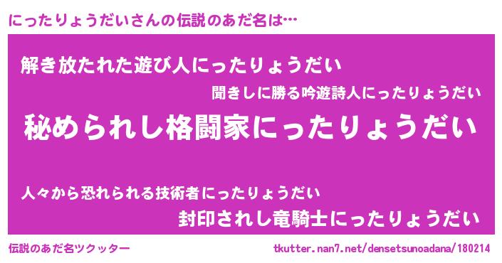 | 意味不明あだ名 | 『にったりょうだいフォーエバー』 |