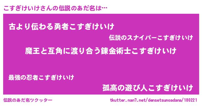 | ヘコむあだ名 | 『こすぎけいけ(遠い目)』『こすっちょ』 |
