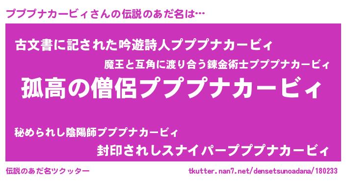 | ポケモン風あだ名 | 『ププゴンZ』『ヒプププナカービィ』 |