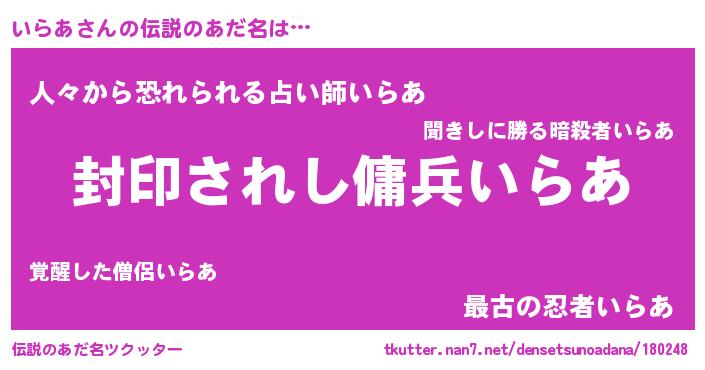 | ヘコむあだ名 | 『いらにゅー』『牛乳』『いらあ(笑)』 |