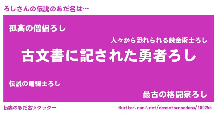 | ポケモン風あだ名 | 『ロシゴンZ』『ゼニロシ』『ローシイ』 |