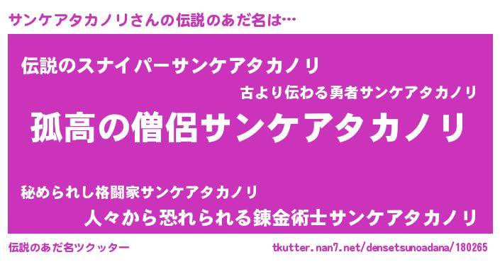 | 男性向けラノベタイトル風あだ名 | 『緋弾のサンケアタカノリ』 |