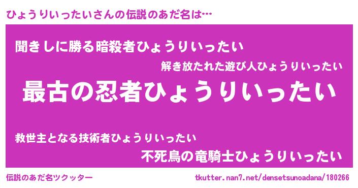 | ヒーロー風カッコイイあだ名 | 『最強戦士ヒョウリイッタイ』 |