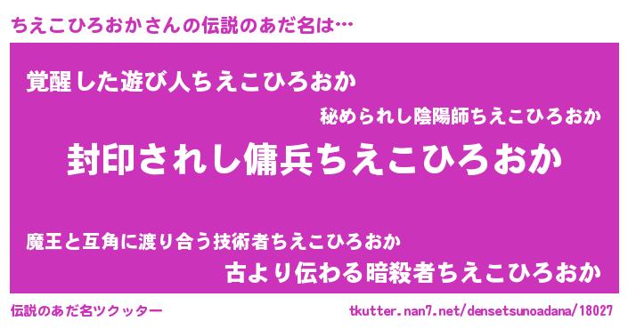 | 男性向けラノベタイトル風あだ名 | 『うちのちえこひろおかが世界を掌握している!』 |
