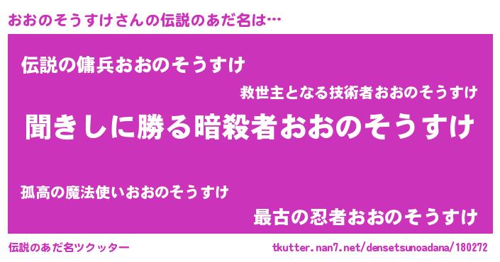 | 男性向けラノベタイトル風あだ名 | 『おおのそうすけという概念が存在しない退屈な世界 』 |