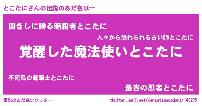 | 胡散臭い通販商品みたいなあだ名 | 『芸能人もオススメする高麗人参…その名も「とこたに」』 |