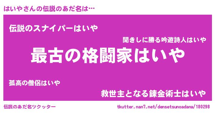 | ヒーロー風カッコイイあだ名 | 『ウルトラはいやマン』『スーパーハイヤ』 |