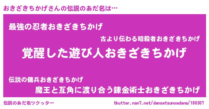 | 意味不明あだ名 | 『自称おきざきちかげ』 |
