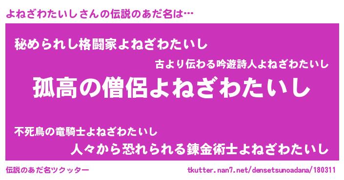 | 欧米人風あだ名 | 『ケンブリッジよねざわたいし』 |