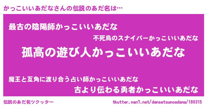 | 意味不明あだ名 | 『住所不定無職かっこいいあだな(77歳)』 |