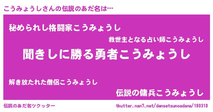 | ヒーロー風カッコイイあだ名 | 『仮面コウダー』『ネオコウミョウシ』 |