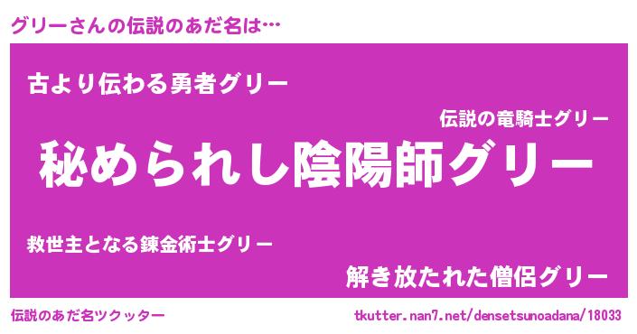 | 男性向けラノベタイトル風あだ名 | 『やはりグリーの青春ラブコメはまちがっている 』 |