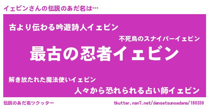 | 意味不明あだ名 | 『イェビンフォーエバー』 |