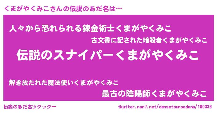| 胡散臭い通販商品みたいなあだ名 | 『必ず成功する霊験あらたかなお札…その名も「くまがやくみこ」』 |