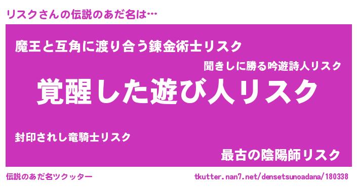 | ヒーロー風カッコイイあだ名 | 『天弓騎士リス』『正義の使者リスク』 |