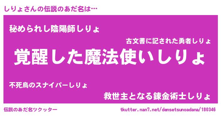 | ヒーロー風カッコイイあだ名 | 『炎刃騎士シリ』『ウルトラしりょマン』 |
