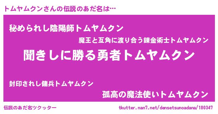 | 可愛いあだ名 | 『トーみん』『トムうちぇる』 |