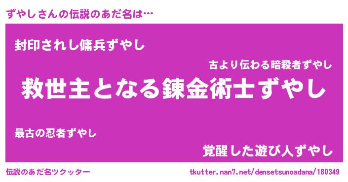 | ヒーロー風カッコイイあだ名 | 『天空の使者ずやし』『スーパーズヤシ』 |