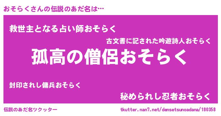 | ヒーロー風カッコイイあだ名 | 『黄金騎士オソ』『天空の使者おそらく』 |