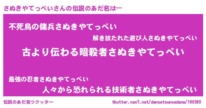 | 意味不明あだ名 | 『永久保存さぬきやてっぺい』 |