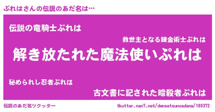 | ヒーロー風カッコイイあだ名 | 『仮面プレダー』『黄金騎士プレ』 |