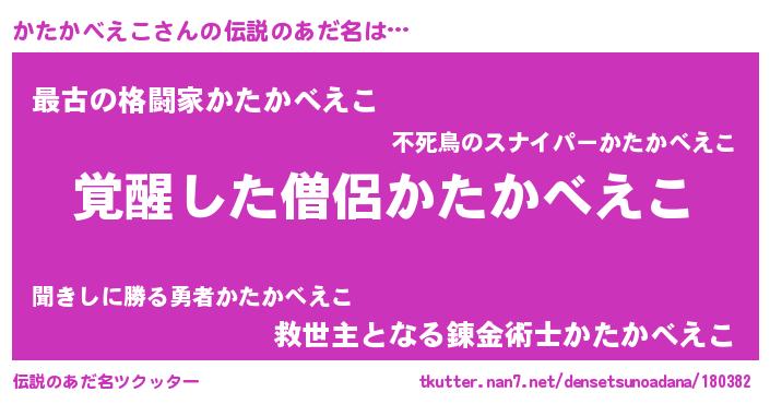 | 男性向けラノベタイトル風あだ名 | 『かたかべえこの嫁は女の子じゃないと思った?』 |