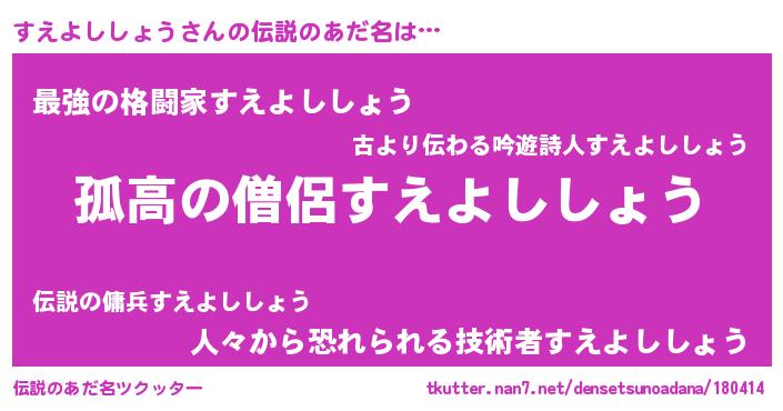 | 男性向けラノベタイトル風あだ名 | 『スエヨシショウスレイヤー』 |