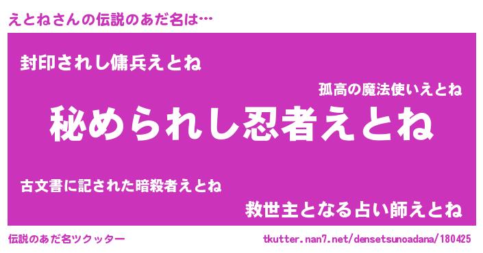 | 意味不明あだ名 | 『えとねフォーエバー』『自称えとね』 |