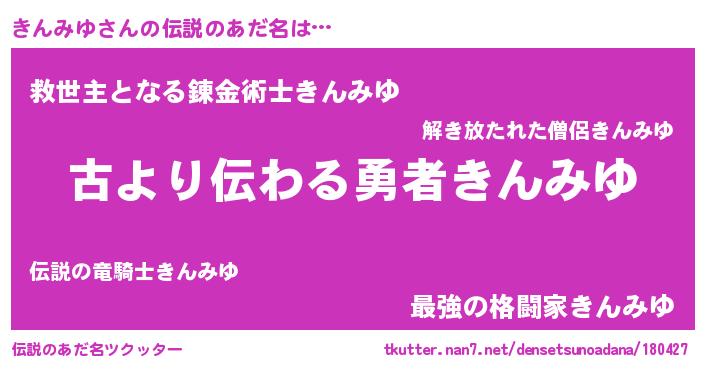 | 欧米人風あだ名 | 『アンジェラ・きんみゆ』 |