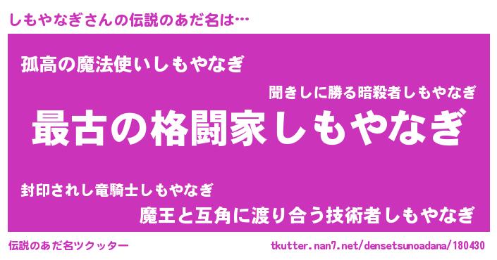 | 意味不明あだ名 | 『住所不定無職しもやなぎ(10歳)』 |