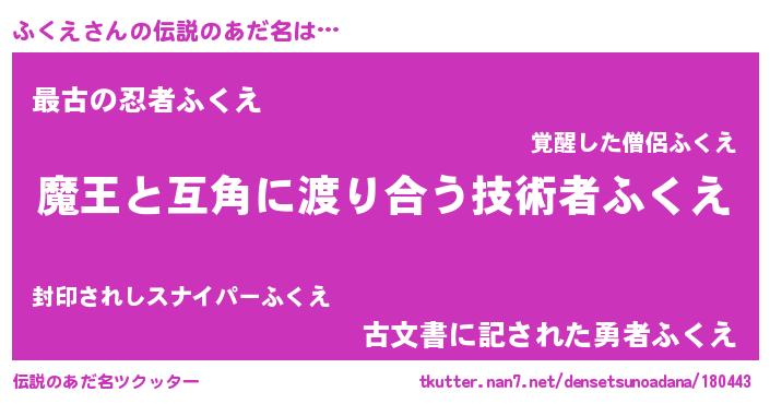 | ヘコむあだ名 | 『なまこ酢』『ふくえ(震え声)』 |