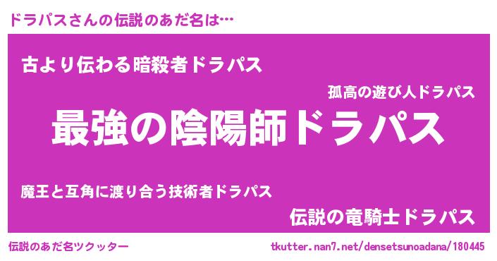 | ヒーロー風カッコイイあだ名 | 『ウルトラドラパスマン』『ネオドラパス』 |