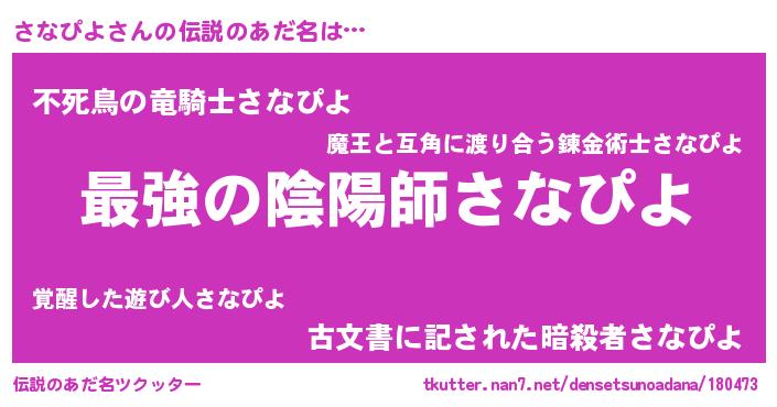 | ファンタジー風あだ名 | 『エターナルサナピヨー』『ゼサナトゥ』 |