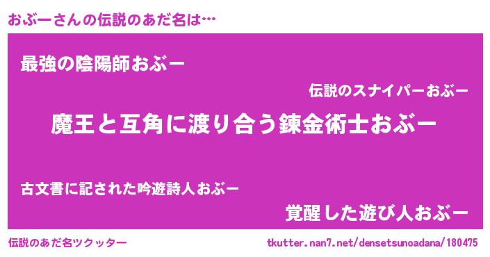 | 意味不明あだ名 | 『眠気覚ましガムおぶー味』『自称おぶー』 |