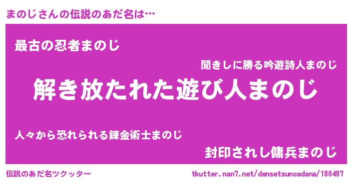 | 意味不明あだ名 | 『とにかく怪しいまのじ』『自称まのじ』 |