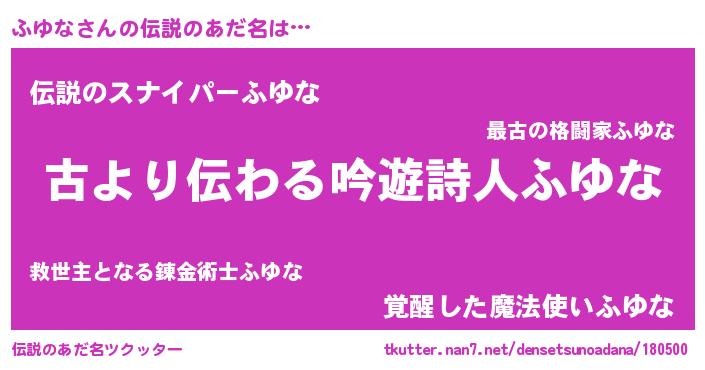 | 欧米人風あだ名 | 『ダルビッシュふゆな』『マイケルふゆな』 |