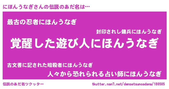| ヒーロー風カッコイイあだ名 | 『炎刃騎士ニホ』『スーパーニホンウナギ』 |