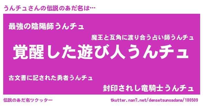 | ヒーロー風カッコイイあだ名 | 『炎刃騎士ウン』『ウルトラうんチュマン』 |